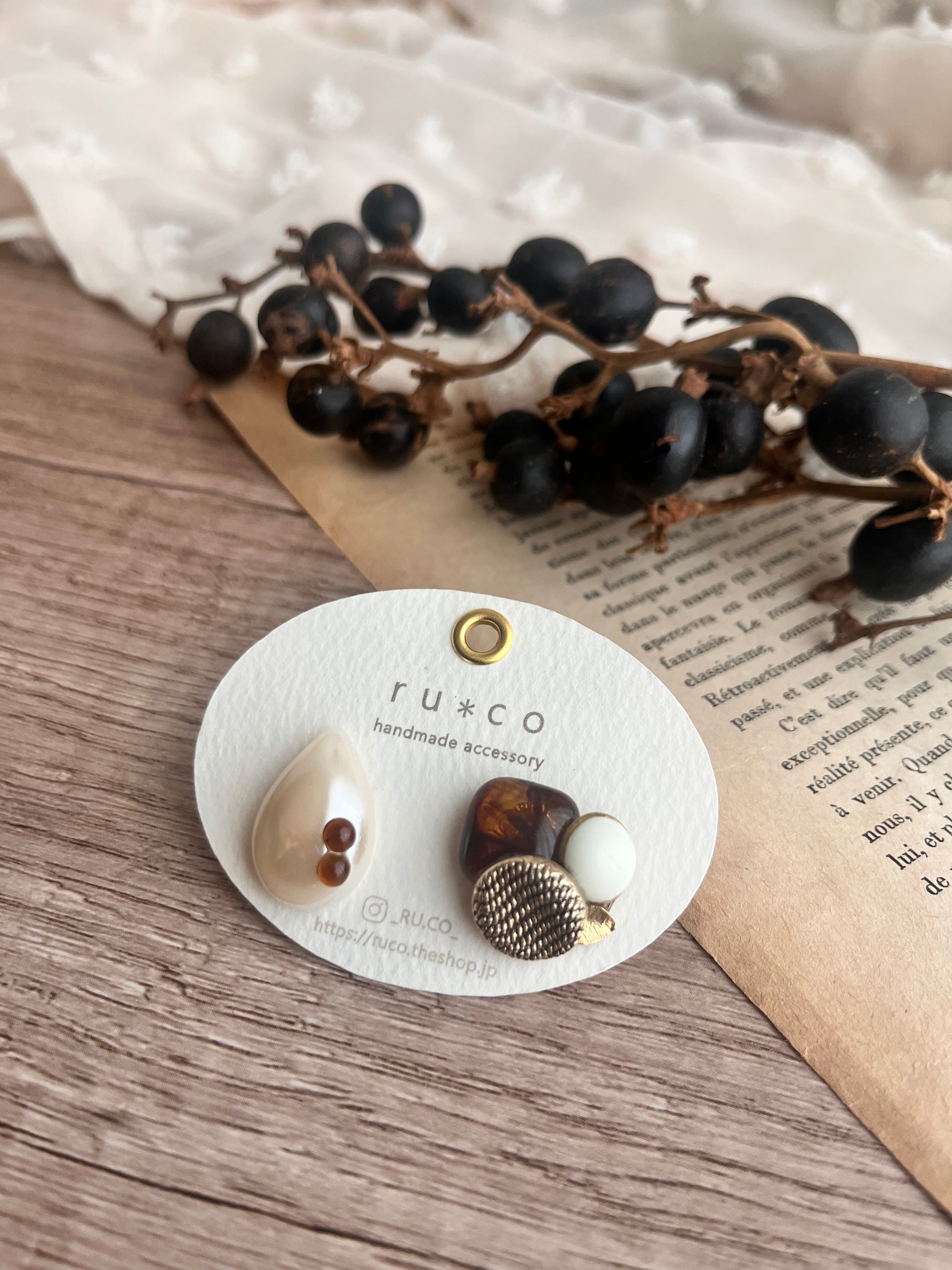 組み合わせたアシンメトリーピアス ¨̮⑅*