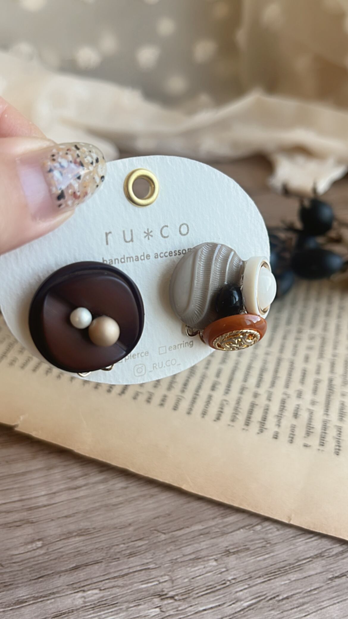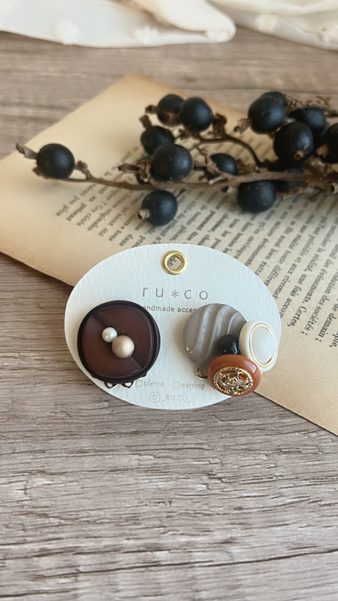 ヴィンテージボタンたちを組み合わせたピアス