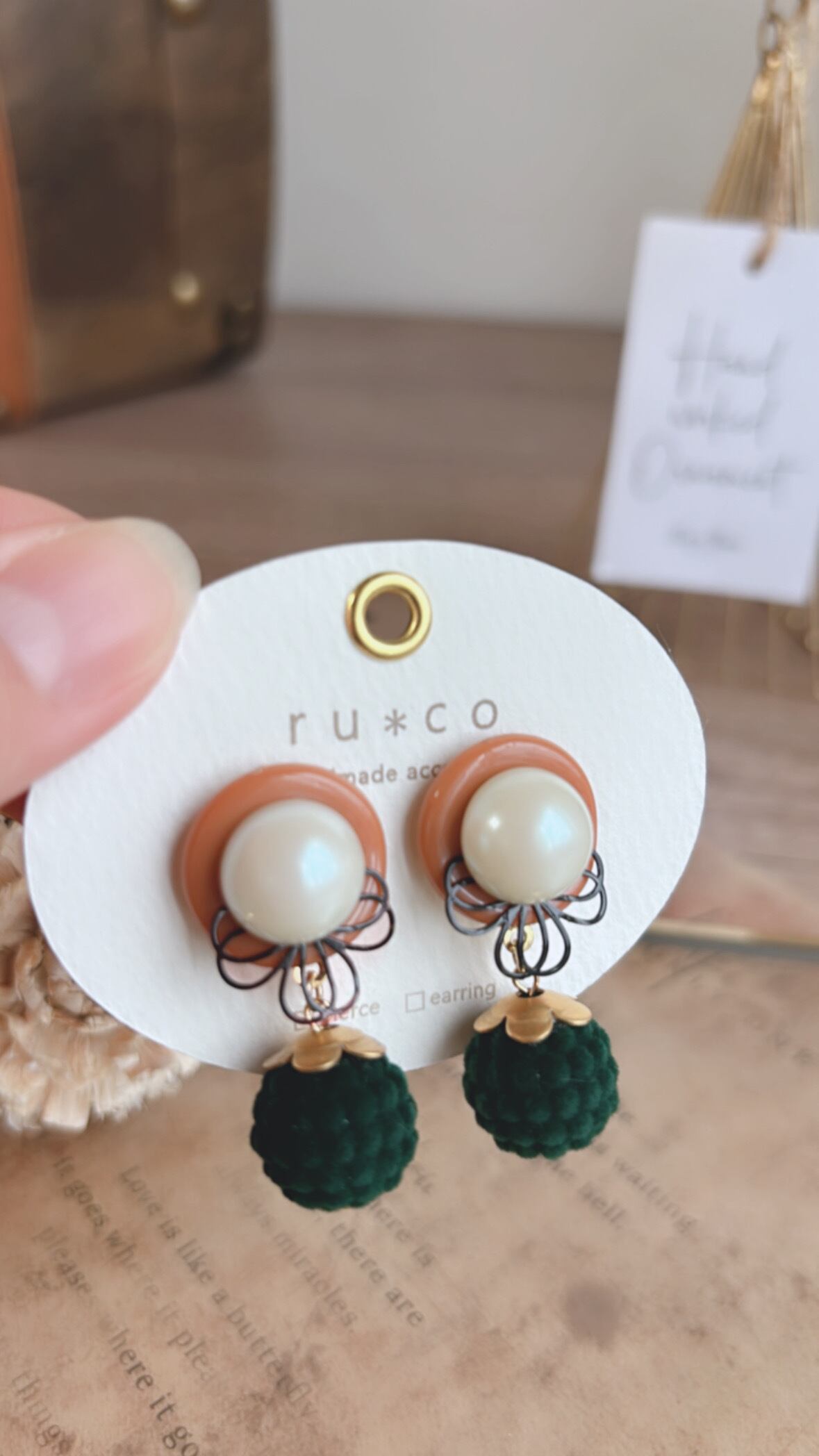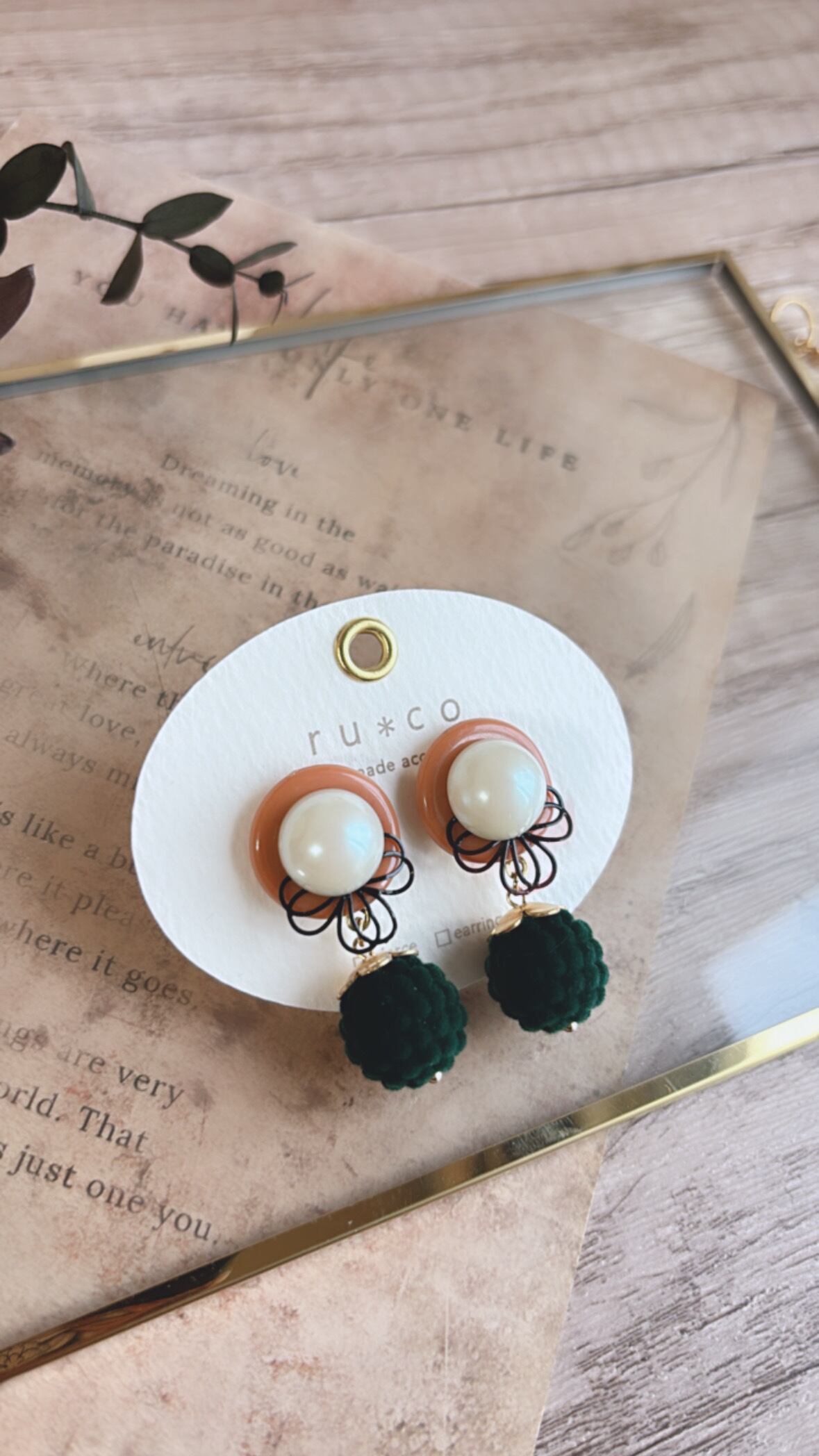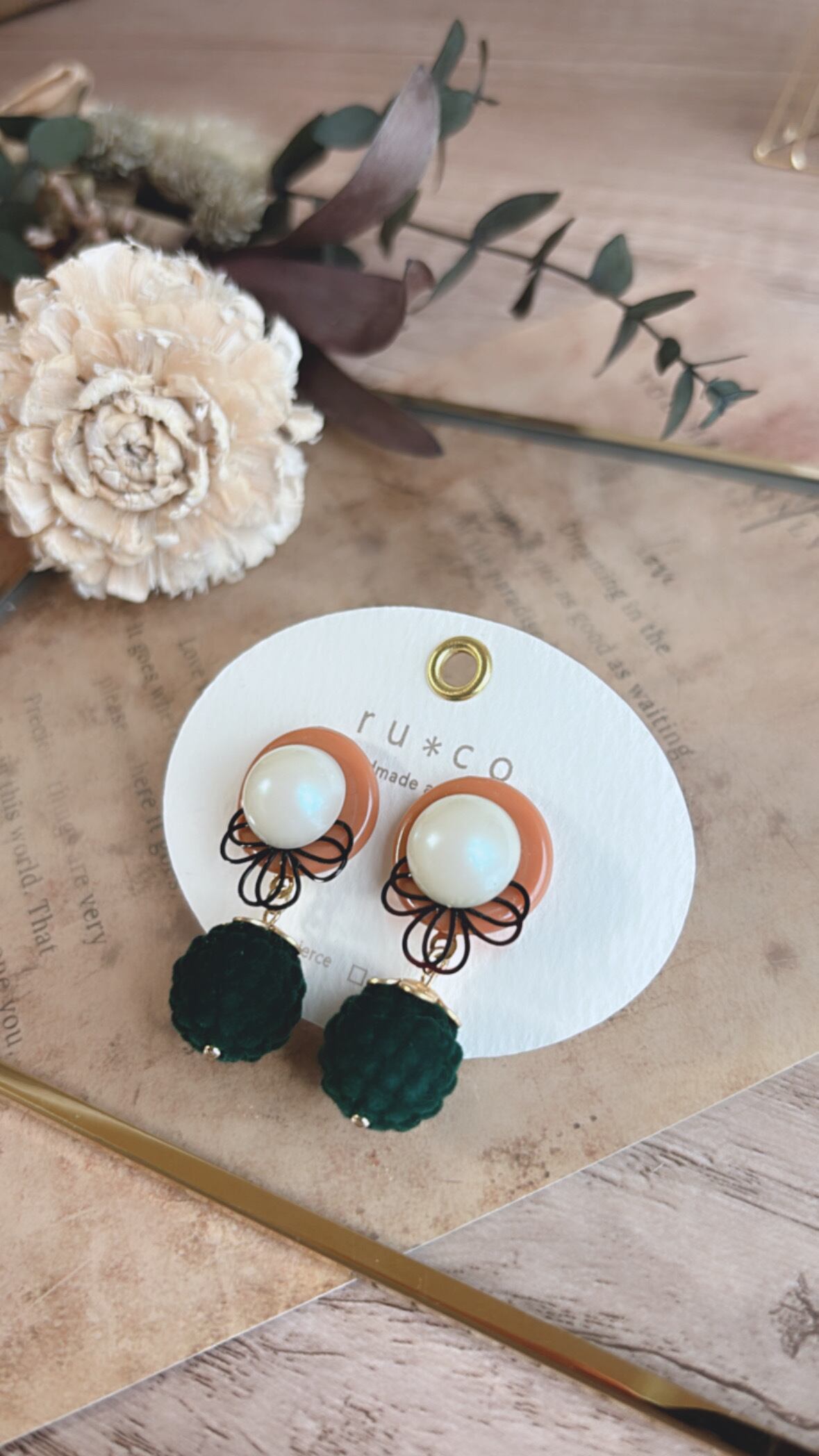 日本製ヴィンテージパールを装飾した レトロカラーなピアス⋈*。゚ こちらは一点物です︎☺︎ 現在ピアスのみとなります★